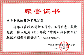大會隆重表彰了2013年度石化聯合會科學技術獎獲獎項目單位及代表。經石化聯合會科技獎勵評審委員會終審評定,決定授予2013年度中國石油和化學工業聯合會科學技術獎269項,其中技術發明獎50項、科技進步獎219項,大會同時發布了2013年度新認定的27家“中國化工行業技術創新示范企業”名單。史丹利化肥股份有限公司被授予“中國化工行業技術創新示范企業”稱號。