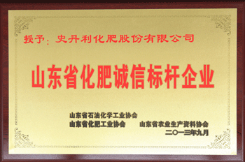 公司喜獲“山東省化肥誠信標桿企業”榮譽稱號