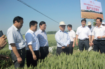 5月14日,黃淮海地區小麥成熟技術集成推廣專家組座談會在河南省商水縣召開。全國著名小麥科學家、農業部小麥專家組副組長、國家小麥工程技術研究中心書記郭天財教授等10名專家在周口市副市長劉占方、商水縣縣長馬衛東、公司銷售總監高楊的陪同下,專程到商水縣史丹利小麥高產實驗基地進行了參觀指導。