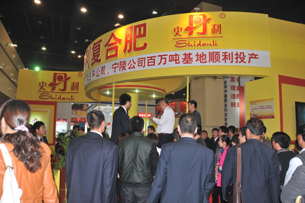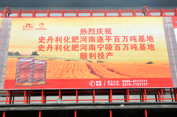 展館內,以黃色為主色調的史丹利公司展位前,參觀者始終絡繹不絕;展館外,印有“熱烈慶祝史丹利化肥河南遂平百萬噸基地、史丹利化肥河南寧陵百萬噸基地順利投產”的大型噴繪,吸引了廣大參觀者駐足觀看。