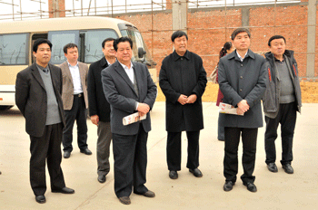 山東省經信委副主任高方(右二)在臨沂市政府黨組成員宋法亮(左四),臨沭縣委常委、副縣長楊會軍(左一),