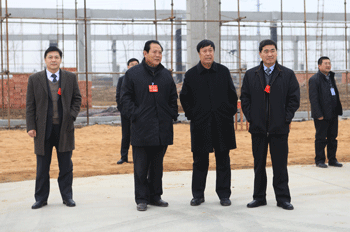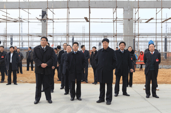 1月16日下午,出席臨沭縣“兩會”的縣人大代表、政協委員在縣人大黨組書記、第一副主任姜自棠,縣政協黨組書記、主席鐘華的帶領下,分兩組先后蒞臨公司視察年產160萬噸新型復合肥項目建設情況。董事長高文班陪同。