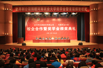 1月7日下午,河南農業大學寬廣的禮堂內暖風融融,師生云集,“史丹利”獎學金設立暨首屆頒獎典禮在這里隆重舉行。
