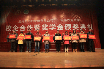 “史丹利”助學獎金由公司在河南農業大學首次設立。副總經理楊其洪代表公司向河南農業大學捐贈“史丹利”獎學金50萬元,并為品學兼優的10名學生發放了獎學金,鼓勵獲獎學生要堅定信念、樹立理想,力爭在時代洪流中勇立潮頭,奉獻青春,建功立業,用優異成績回報社會。