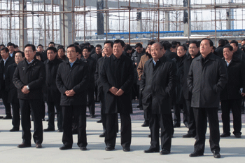 1月3日下午,市委書記、市人大常委會主任張少軍,市委副書記、市長張務鋒等市領導帶領市委理論學習中心組讀書會(觀摩會)的與會人員蒞臨公司160萬噸新型復合肥項目建設工地視察指導