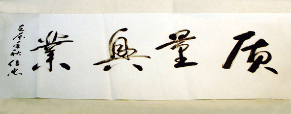魏傳忠副局長為史丹利公司題詞 座談會后,魏局長揮毫潑墨,為公司題寫了“質量興業”四個遒勁有力的大字,既表明了他對公司堅持質量興企戰略的充分肯定,也飽含了他對公司發展的深情希冀。(企劃科 郇恒琳 秦興江)