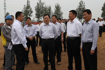 10月9日,臨沭縣縣長程守田,縣政協主席鐘華,縣人大黨組書記、第一副主任姜自棠帶領全縣百企改造升級觀摩團成員參觀公司年產160萬噸新型肥料建設項目。董事長高文班、總經理高進華陪同。