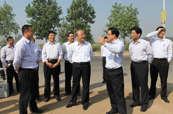 10月4日上午,臨沂市委書記、市人大常委會主任張少軍蒞臨公司視察工作。臨沭縣委書記任慶虎、縣長程守田,縣委副書記傅磊,縣委常委、副縣長楊會軍,縣委常委、辦公室主任王景美,公司董事長高文班、總經理高進華等領導陪同。