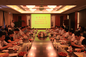 8月7日,山東翔龍集團董事長解永軍帶領51名高、中層人員前來公司參觀交流。公司董事長高文班在一樓會議室親切會見了解永軍一行。