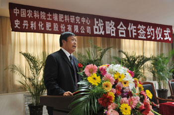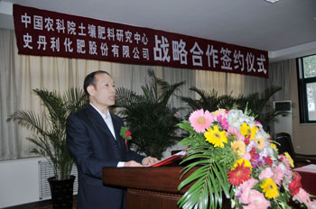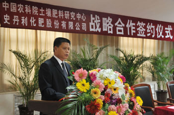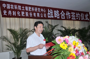 中國農業科學院資源區劃研究所副所長、土壤肥料研究中心副主任郭同軍在簽約儀式講話中表示,作為國家級農業資源與環境研究中心,我們將充分發揮人才、技術、成果優勢,為企業提供強有力的技術支撐,全力支持史丹利公司新型肥料的研發和農化服務,努力打造中國新型肥料品牌,為廣大農民研發出更多優質、高產、高效肥料,促進農業發展,幫助農民增收。