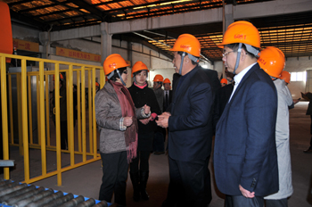 金京一行還實地參觀了公司高塔車間成品庫房和生產廠區,饒有興致地觀看了“機械手”工作流程。(企劃)