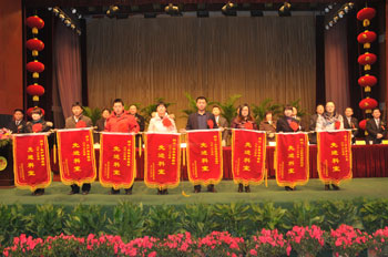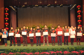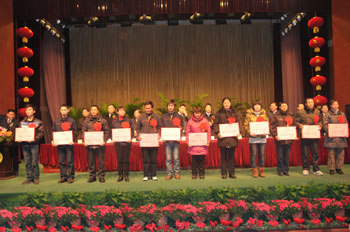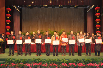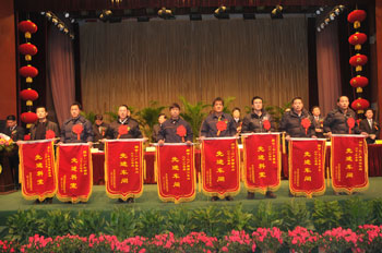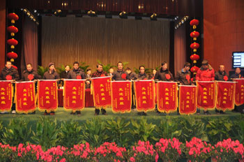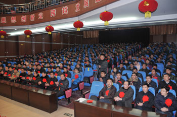 1月28日,公司2010年度工作總結表彰會議隆重召開。公司領導高文班、高進華、井沛花、高文安、密守洪、高文靠、張磊等出席會議。董事長高文班致開幕詞,總經理高進華作重要講話,副總經理高文安主持大會。來自公司各條戰線的先進工作者、員工代表參加了會議。