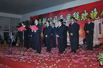 12月30日晚,公司2011年元旦聯歡晚會隆重舉行,公司董事長高文班,總經理高進華,副總經理井沛花、高文安、高文靠、張磊,生產總監李國祥、企管和人力資源總監楊其洪等領導觀看了晚會。來自公司各條戰線的員工在新年來臨之際,奉獻了一臺精彩絕倫的文藝盛宴。