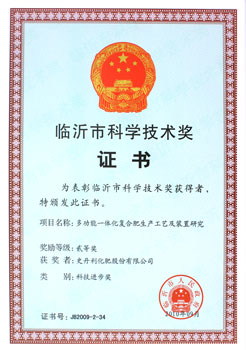 公司多功能一體化復合肥生產工藝及裝置項目獲得“臨沂市科學技術二等獎”,公司榮獲“臨沂市產學研合作創新工作先進單位”稱號,獲準設立山東省院士工作站。公司董事長高文班、副總經理高文安分別上臺領獎和接受山東省院士工作站授牌。(企劃)