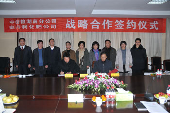 此次,中儲糧總公司湖南分公司與公司開展戰略合作,充分發揮各自優勢,創新了糧食、肥料相結合的營銷和流通模式,將進一步帶動雙方在相關產業的延伸發展,促進雙方繼續做大做強,更好的服務于“三農”事業,為保障國家糧食安全做出更大的貢獻。