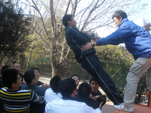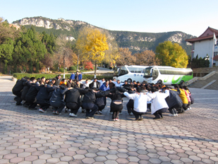 本次拓展訓練在風景優美的五峰山舉行,由濟南“人眾人”拓展訓練基地負責組織安排。在培訓師帶領下,大家以勇敢、自信、合作的團隊精神圓滿完成了 “背摔”、“高空斷橋”、“電網”、 “盲陣”、“七巧板”、“救生墻”、“生死時速”等拓展項目。