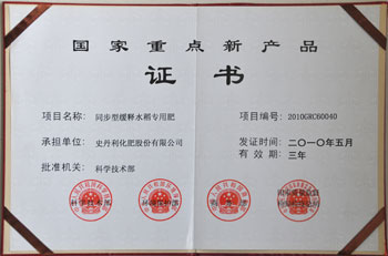 近日,公司研發的同步型緩釋水稻專用肥被國家科學技術部、環境保護部、商務部、國家質量監督檢驗檢疫總局聯合認定為國家重點新產品。