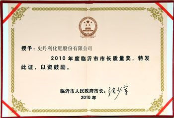 公司榮獲2010年度臨沂市市長質(zhì)量獎