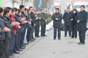 2月14日(大年初一)一大早,董事長高文班、總經理高進華,副總經理高文安、高文靠、密守洪、張磊,銷售總監井沛花、魯守尊頂著嚴寒,深入各生產分廠看望、慰問值班的員工,送上新春的祝福。