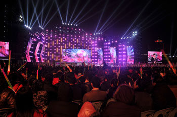 久負盛名的水木年華組合帶來的《啟程》、實力歌手毛阿敏帶來的《永遠是朋友》,以及青年歌手王菲菲帶來的《水上花》,這些耳熟能詳的旋律,點然了大家的無限激情。依舊美麗動人、散發著知性芬芳的伊能靜,為大家帶來了《你是我的幸福嗎》、《一千遍我愛你》兩首歌曲,引起了全場觀眾的強烈共鳴,許多人齊聲唱和,現場成了歌的海洋。近來人氣陡升的歌手兼賽車手樊凡,則為大家帶來了他的成名曲《我要大聲告訴你》。而深受老少喜歡的歡樂寶貝大張偉,為大家獻唱了《我是你的羅密歐》、《大喜宙》。著名民歌手呂薇與搭檔張迪,為現場觀眾帶來了《歡樂中國》,謳歌祖國的繁榮富強。