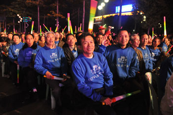 來自寶島臺灣的當紅偶像吳克群一亮相,臺下立刻傳來一陣陣歡呼聲。這個帥氣男孩用嘹亮的歌聲和勁爆的舞蹈,為大家演唱了《音樂讓我說》、《老子說》兩首歌曲,把晚會再次推向高潮。晚會在主持人張蕾的一曲《跟我出發》中緩緩落幕。