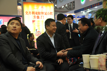 12月12日至13日,由中國磷肥工業協會、中國農業生產資料流通協會主辦的第十屆國產高濃度磷復肥產銷會議暨'2009中國磷復肥工業展覽會在安徽合肥國際會展中心隆重舉行。作為每年一度的行業盛會,來自全國各地的200多家大中型肥料生產企業參展,集中展示發展成果。作為本屆展會的重要參展商,史丹利化肥股份有限公司的展位以其獨特的創意和新穎的設計,成為展覽會上一道亮麗的風景,展出的優質、高效肥料受到了廣大農戶與經銷商的熱捧。總經理高進華、副總經理張磊、銷售總監井沛花、魯守尊、生產總監李國祥等公司領導參加了展會。