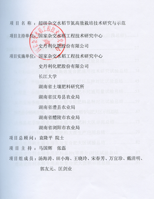 日前,由國(guó)家雜交水稻工程技術(shù)研究中心、史丹利化肥股份有限公司共同主持的超級(jí)雜交水稻節(jié)氮栽培技術(shù)研究與示范項(xiàng)目,經(jīng)過(guò)一年的研究試驗(yàn)與示范,完成階段性總結(jié)。該項(xiàng)目由雜交水稻之父袁隆平院士親自擔(dān)任項(xiàng)目顧問(wèn),長(zhǎng)江大學(xué)、湖南土壤肥料研究所等單位具體實(shí)施。