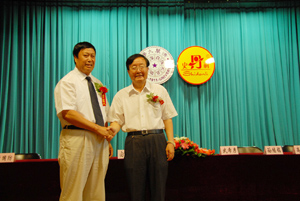 董事長(zhǎng)高文班(左)與清華大學(xué)副校長(zhǎng)孫繼銘(右)親切握手