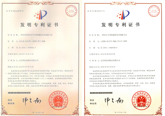 公司2項海藻肥發(fā)明專利、2項外觀設(shè)計專利獲得授權(quán)
