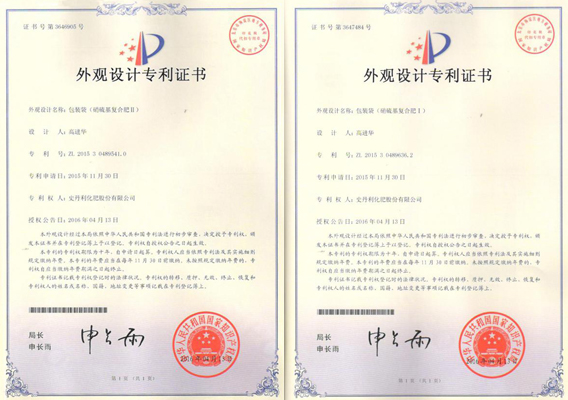 2項外觀設(shè)計分別為:包裝袋(硝硫基復(fù)合肥Ⅰ)(ZL201530489636.2)、包裝袋(硝硫基復(fù)合肥Ⅱ)(ZL201530489541.0)。 (行政中心 江廷雪)