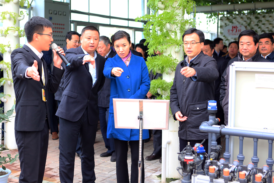 張宏偉一行實地參觀了史丹利現代農業示范園智能溫室,聽取了總裁高進華關于節水農業及水肥一體化技術應用的情況介紹。