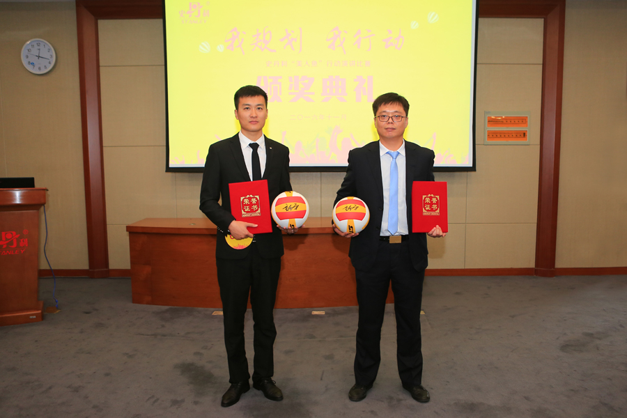 經過精彩激烈的角逐,技術中心趙超、遂平公司孫敬豪憑借出色的表現,榮獲“一等獎”。除了誘人的現金獎勵以外,更有郎平簽名排球一個!