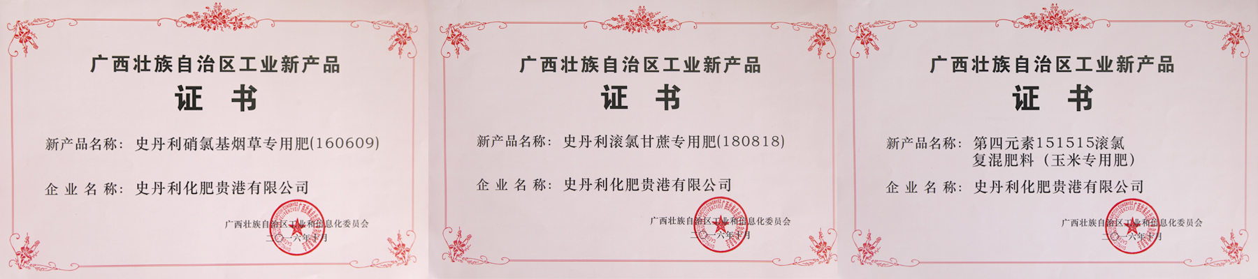 近日,史丹利化肥貴港公司3個新產品被評為“廣西壯族自治區工業新產品”