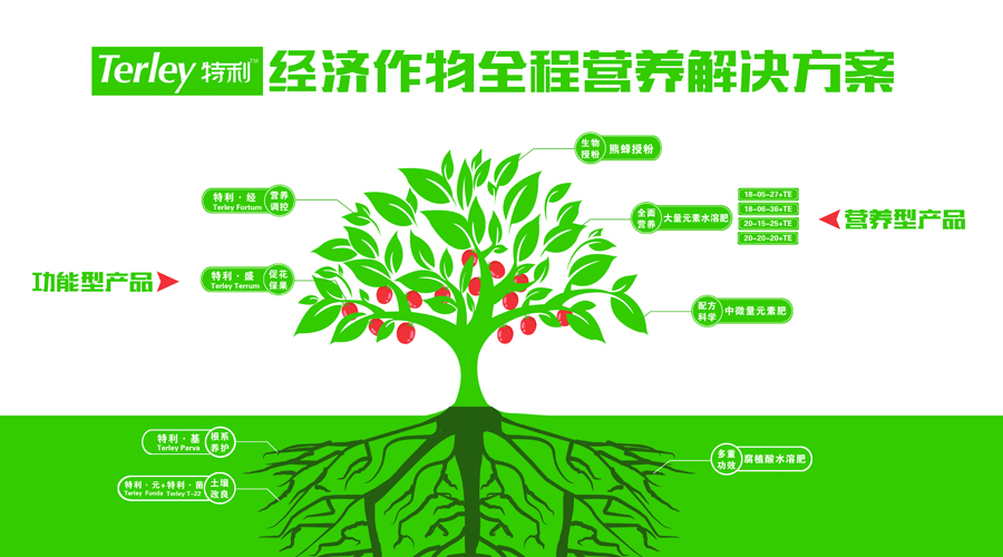 史丹利聯手荷蘭科伯特,針對不同作物各個時期的營養進行深入的研究,推出全新經濟作物解決方案——特利。特利會有一定范圍用量的精確控制,使作物遵循自然生產規律,達到增加產量、提高品質的目的。