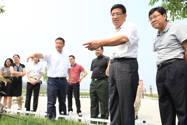 臨沭縣政協主席鐘華(右二)與總裁高進華(右五)及其他住沭市政協委員在示范園區參觀